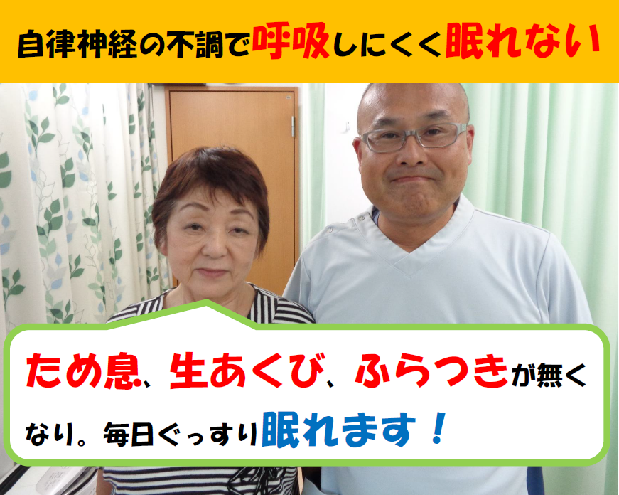 初回の施術でその日は朝までぐっすり眠ることができ、驚いたのを覚えています。数回目には日常生活にはほとんど支障がないほどにまで回復しました。